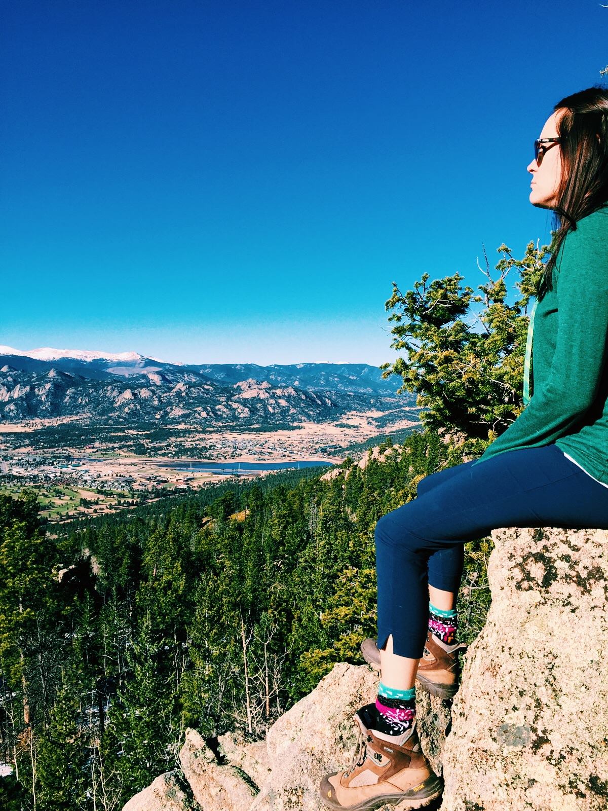 Made it to the top! Great views of Estes Park from this point.
